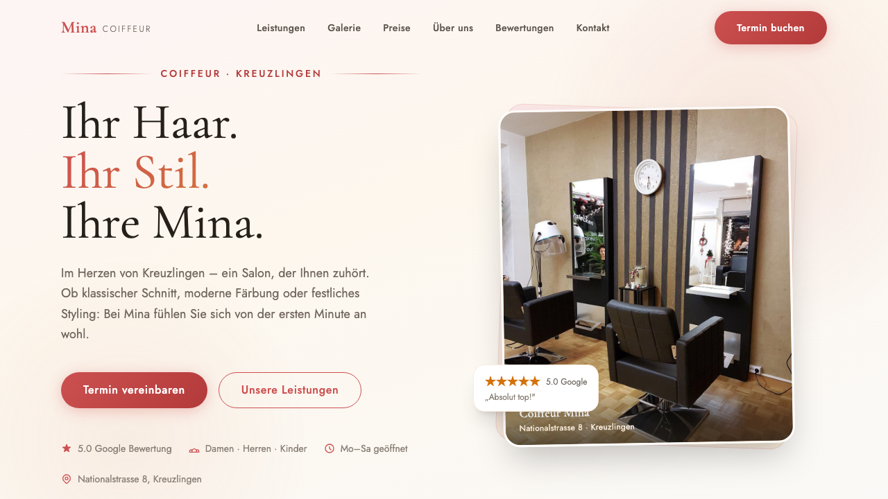 Template für Coiffeursalons mit Dienstleistungen, Preisliste und Terminbuchung.